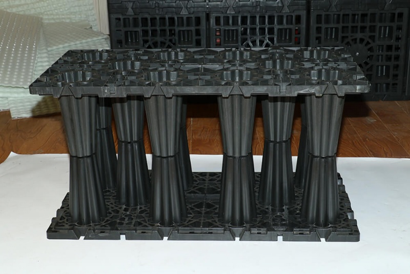 防排水保護(hù)板獨有的凹凸中空立筋結(jié)構(gòu),可以有效快速的導(dǎo)出地下防水層積水,地下滲出的水順著地下架空層排水板的空間將水引流至四周盲溝,再通過盲溝后引流至集水坑。從而大大的減少甚至消除了防水層的靜水壓,通過這種主動導(dǎo)水的原理達(dá)到主動防水的效果。有效的保護(hù)構(gòu)筑物和防水層,并且抵抗土壤中的各種酸堿和植物的根刺還有防潮降噪的功能。對土建施工周期及構(gòu)筑物的正常使用和壽命具有重要的作用。